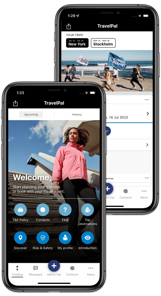 Trip segments booked via Concur Travel or the Travel Agency are automatically loaded into The adidas TravelPal app and placed onto your timeline where we will actively monitor them for you. You can complete your timeline by manually adding additional segments like calendar items.